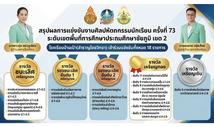 - ขอเชิญชวนทุกท่าน ร่วมชมและเชียร์การแข่งขัน กีฬากลุ่มโรงเรียนตำบลบ้านเป้า ระหว่างวันที่ 25 – 26 สิงหาคม 2568 ณ โรงเรียนบ้านเป้า (สำราญไชยวิทยา) ( 23 ส.ค. 68 )